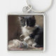 This painting features a playful black and white fluffy kitten, caught in the midst of mischief, as it plays with a bundle of ribbon. The kitten's gaze is focused on the ribbon, as it appears to be lost in the joy of the moment. The background of the painting is dark, which helps to accentuate the playful energy of the kitten. Overall, "Tangled Up In Fun" evokes a sense of joy and innocence, capturing the curious and playful nature of a young feline at play.