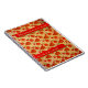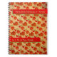 This conveniently sized, versatile spiral notebook features Leslie Sigal Javorek's original digital painting that emulates the look of Gold Shantung that appears to have hand-painted Tango Red peonies.On bands of red, 2 custom text fields for title, your name, or other info.