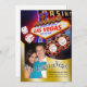 Photo cutout Las Vegas invitation shows the excitement of that Nevada city with the glamourous, trademark Vegas Welcome sign, VIP casino chips with you and your honey's names (contact me to add your names to the chips) and rolling heart dice. Easy to personalise - use the "Customise It" button to add your own text and photo. For info or requests, email: cheryl@cheryldanielsart.com/contact. Matching stickers, magnet favours and more available.