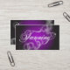To perfectly align your text, press "CUSTOMIZE IT" under the image, click on the newly loaded image of the business card to go to design view. Use the text boxes on your right to highlight the text that you want to edit, then use the arrows to move it or click on the lettering on the image of your design and click and drag your mouse to move it. If you require assistance, please contact pamsdesigns@live.ca. ©2012 Pam's Designs. This elegant, professional, and stylish purple, black and white glowing smoky monogram script lettering with swirled floral flourishes and sparkle over a spotlight tanning business card provides a classy, professional look for your tanning salon business. This elegant monogram business card is can be personalised to meet your business needs. If you would like to see your business name written with this fancy script font, please contact us at pamsdesigns@live.ca.