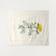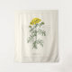 This yellow wildflower is realistically hand drawn and has a grey coloured sketch of a butterfly behind it. The tapestry has a vintage and retro feel to it and is perfect for the home of plant ladies or anyone who loves butterflies and flowers. Underneath you'll find the roman number as the year of creation, with the French text 'Fleurs sauvages et papillons'