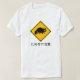 Watch out for tanuki! These little racoon dogs of Japan tend to have trouble with vehicle traffic, so you will see these signs posted in tanuki crossing areas. This shirt features a reproduction of this street sign, along with the caption "Tanuki ni Chuui," or "Watch out for Tanuki" in Japanese.