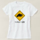 Watch out for tanuki! This shirt features a funny Japanese street sign, often placed along roads as a warning to motorists where racoon dogs tend to cross the street. The caption on the bottom is the Japanese phrase "Tanuki ni Chuui," which means "Watch out for Tanuki."
