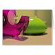 Whimsical look at desk accessories... fuchsia scotch tape and green mouse paper clip magnet