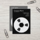 A business card template with a bold reel to reel tape spool motif on the front and back. Company name, business type and address on the front with name, job title, telephony, web and email addresses on the back, with a similar layout. This card can also be further customised.