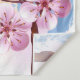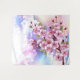Artistically drawn, branch of pink, cherry blossoms on picturesque, textured background, painted over with white, pink and blue paint. Pink Sakura