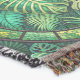 Tapestry featuring a pattern of green tropical leaves within circular frames on a leafy background. The design has a fresh and nature-inspired feel.