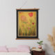 Pretty whimsical long-stemmed flowers are created as mixed media art and are mounted on black, a most delightful work of art.