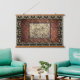 The polyester fabric displayed many wrinkles and several sharp creases throughout. At the bottom of the tapestry, I noticed a bulge in the fabric because it was not pulled tight enough before being connected to the wooden boards. It took me over an hour to spay water on the tapestry before putting it on an ironing board where I used a warm iron over a polyester cloth to remove the wrinkles and creases in the material. I was able to get out the wrinkles and creases that made that tapestry look as beautiful as its picture.