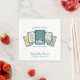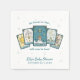 This tarot themed baby shower napkin features a five-card spread with hand-drawn illustrations of The Sun, The Star, The Baby, The Moon, and The Chariot, each reimagined with sweet baby motifs like a rattle, bottle, and carriage. The message reads “The future is clear... the baby will soon be here,” with space below to personalise the event name and date. Light twinkles and star accents in the background add a magical touch to your table setting. A perfect match for celestial baby shower invitations, magical baby shower aesthetic, tarot inspired showers, and Halloween baby shower ideas. Designed to coordinate with other items in the tarot baby shower collection.