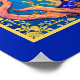 Poster in the tarot card "The Queen of Wands". Standing regally in flowing blue robes, radiant under a golden halo, she holds a wand, symbolising power and creativity. Surrounded by fiery branches and stars, she exudes confidence, warmth, and spiritual strength