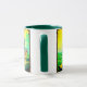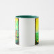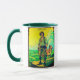 Mug in the tarot card, "The Fool," portraying a confident adventurer standing on a cliff, symbolising new beginnings. Dressed in rugged attire, he’s accompanied by a loyal dog. The vivid landscape and golden sky conveys freedom, optimism, and the courage to embrace life’s unknown paths.