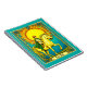 Notebook in an illustration of the tarot card, “The Sun,” depicting a radiant sun dominating the sky, its golden rays surrounding a boy riding a white horse. He symbolises innocence and vitality, while the vivid blue background radiates joy and clarity.