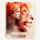 Tarot Inspired Notebook - A watercolor image of a beautiful lady and her lion, facing towards the future, depicting the Tarot Card of "Strength." The lion also falls under the realm of Leo in the world of astrology. The colours are bold reds, oranges and sunny yellows, the colours associated with confidence, joy and happiness. The ribbon at the bottom is subtle to not detract too much from the image, but of course personalizable to make this a wonderful gift.