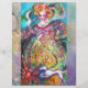 The Major Arcana Moon.Mysterious allegorical contemporary painting .Colourful watercolor painting with gold foil by Bulgan Lumini .(c)Magic gold sparkles in bright teal,blue green ,yellow colours .Mixed media painting with golden and silver foil .