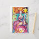 The Major Arcana Star.Mysterious allegorical contemporary painting .Colourful watercolor painting with gold foil by Bulgan Lumini (c).Magic gold sparkles in bright teal,blue green ,yellow colours .Mixed media painting with golden and silver foil .