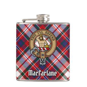 Clan MacLachlan Crest over Tartan Hip Flask