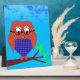 A tartan owl shaped by hearts. Digital image. Original cartoon character.
