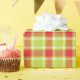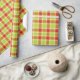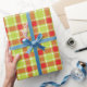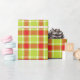Tartan check style graphic Christmas wrapping gift paper in warm red, lime green and a touch of white.