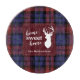 Cute home sweet home Christmas family cutting board you can easily customise by clicking the "Personalise" button, Featuring deer silhouette and clan MacLachlan tartan in red, and purple check.