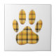 A cute tartan, plaid, dog paw print in orange, black, white, green and red colours.