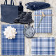 Different tartan wrapping paper sheets but using the same pastel, medium and navy blues palette.