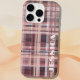 Tartan, buffalo plaid ,check, chequered design theme hand painted , in elegant colour scheme.Trendy red wine nuances, burgundy, bordeaux, maroon, ruby, peach, blush pink, ,ivory, beige, cream, off white, geometric pattern with stripes, crossed lines. Personalizable customisable with a name for example or you can even delete the text.Modern farmhouse, rustic, country cottage, cabin influences for an iPhone case easy to match with your outfit or make a beautiful fashionable stylish creative thoughtful gift.The colours are appropriate for complement autumn fall fashion, also for festive winter time holidays.