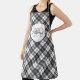Tartan pattern Christmas black white Monogram Apron