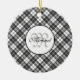 Tartan pattern Christmas black white Monogram Ceramic Ornament