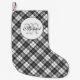 Tartan pattern Christmas black white Monogram Small Christmas Stocking