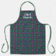 Tartan pattern kitchen apron for men and women. Classic design with squares. Red blue and green colors.