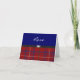 Great looking traditional tartan plaid note cards, in red, white, and blue. A black band, with a silver tone decoration stretches across the middle of the card, with plaid, on the bottom, of the card and solid blue, on the top. Text in white script is customisable to read anything you want. Very elegant note cards to add a special touch to your every day or special occasion correspondence.