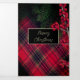 Tartan Plaid Red Personalised White Script Tri-Fold Holiday Card