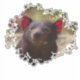 A Tasmanian devil with his wet nose looking straight ahead. The sun from behind bringing out the redness in his ears. An image with a digital splatter effect.