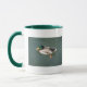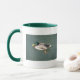 Eine Ente, die sich auf dem dunklen Wasser treiben und den orangen Fuss locker ins Wasser hängen lässt ist auf dieser Tasse zu sehen. Text in der Mitte: take a rest. Mach mal Pause, danach arbeitet man wieder besser.