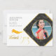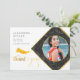 Elegant, and modern gold foil graduation Thank You Greeting card. Easily personalise the design by adding the graduate's photo, name, and graduation year, to create a unique “Thank You” greeting card for your graduation. Use your school colour scheme to change the cap topper colours.
