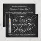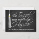 College graduation announcement invitation, with formal traditional classic wording and a fun theme. The tassel was worth the hassle. Fun and witty saying about all the hard work, sweat, determination, sacrifice and dedication that went into becoming a successful educational achiever. Dark black canvas style background with a white and gold tassel and cursive lettering. Personalised keepsake for the graduate.