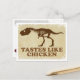 Everything tastes like chicken. Even chicken tastes like chicken. In the prehistoric world, Tyrannosaur tasted like chicken, as did Stegosaur. However, Pterodactyl tasted like salmon and Brontosaur a combination of mutton and peanut butter. Later, cave men discovered that sabre-toothed tiger tasted like sabre-toothed tiger and woolly mammoth tasted like crap. http://www.gritfx.com