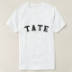 Tate! Is your name Tate? Or do you have a husband, boyfriend, male family member or male friend named Tate? If so, this "Banner" shirt is exactly the gift that you're looking for! The design features "Tate" in arched black lettering across the chest in the classic College font.