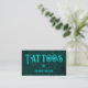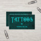 This creative tattoo artist professional business cards template features a teal background and gothic skull head. Cool, unique grunge texture design. Image copyright Marg Seregelyi Photography.