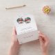 This custom all in one wedding invite features tattoo style graphics with retro style hearts in red with blue flower accents that are ready to be personalised with the name of the bride and groom. The freehand style tattooed graphic has a retro feel.