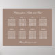 Taupe 8 Table Wedding Seating Chart Poster, please personalise the names of the couple and the names of the guests along with any of the other text that you may wish to personalise. A stylish seating chart poster featuring elegant white text on a lovely taupe colour background.