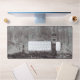 Desk mat printed with a gritty, grungy painterly design of the Venetian skyline featuring the famous bell tower of St. Mark's Square and the domes of Basilica San Marco. Rough grit and dry brush strokes in distressed tones of taupe and cyan produce a blue-green grey grunge texture. Transparent areas within the design allow your custom background colour to show through. Edit to create weathered Venice, Italy desk mats colour-matched to your office. ♡ Idyllfire