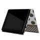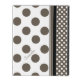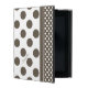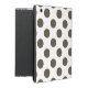 Stylish iPad folio style case with built in stand done in a taupe brown and white polka dot. A smaller taupe and white polka dot pattern decorates the right front edge. Brown script text, on the front, is ready to personalise. Makes a great personalised gift idea.