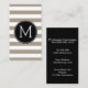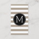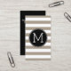 Taupe and White Striped Pattern Black Monogram Business Card