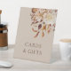Taupe Autumn Floral Wedding Pedestal Sign. Guide guests with elegance using this tabletop sign for your cards and gifts display. Featuring lush watercolor leaves in terracotta and burnt orange, accented by beige dahlias and copper roses, this piece sits beautifully on a taupe background, adding a warm, autumnal touch to your gift table while keeping your space organised and on theme. Add this thoughtful detail to your reception décor today.