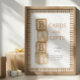 Guide guests with this charming Cards and Gifts sign, featuring vintage-style baby blocks in soft taupe neutral tones and a classic gingham border. Perfect for displaying on your gift table to create a warm, coordinated look. Personalize with name and date for a thoughtful finishing touch.