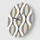 Taupe Beige Tan Grey White Black Ogee Waves Large Clock