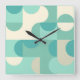 Taupe Beige Teal Blue Mint Green Circles Pattern Square Wall Clock