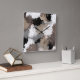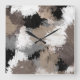 Taupe Black Grey White Abstract Brushstrokes Square Wall Clock
